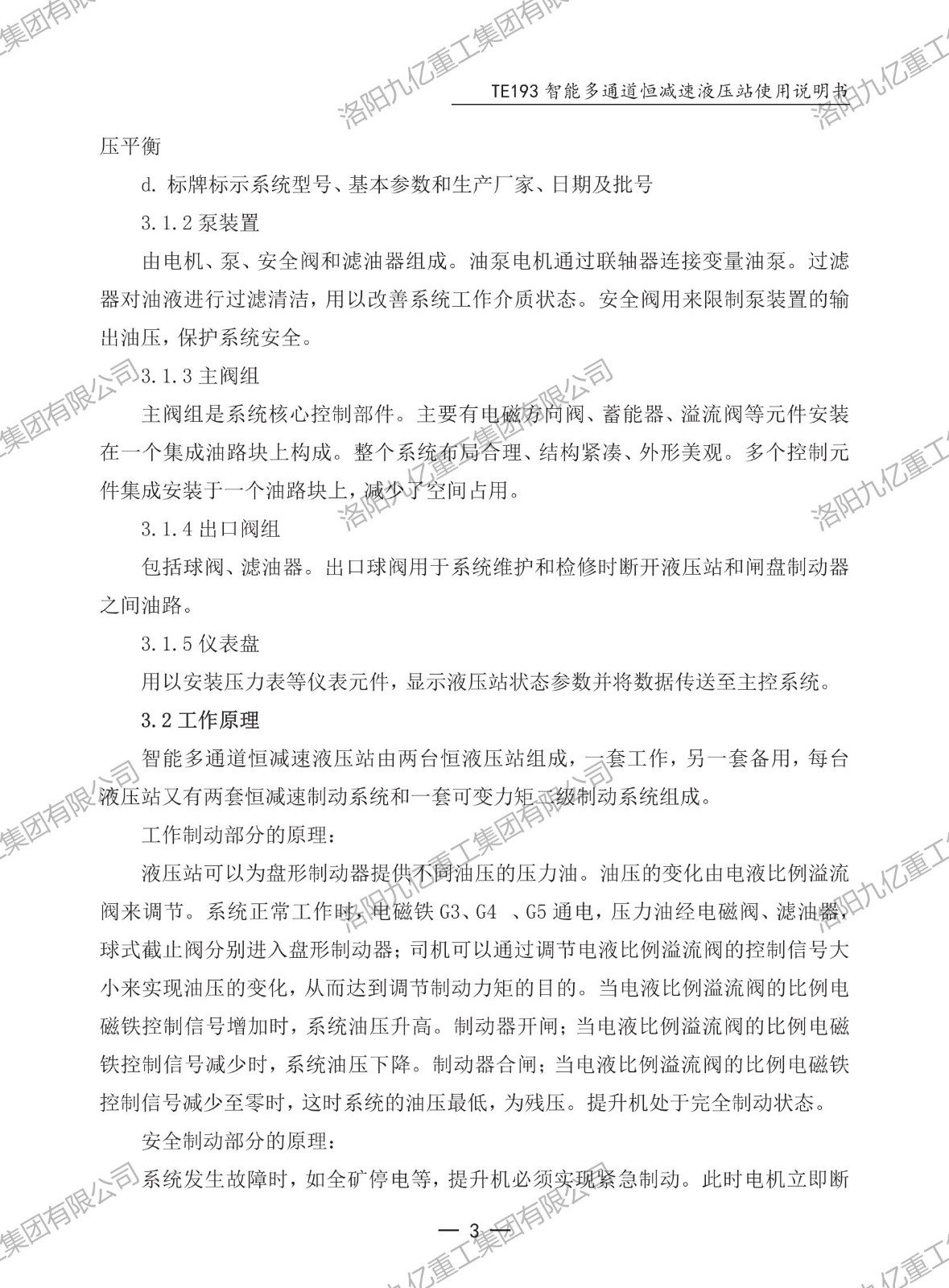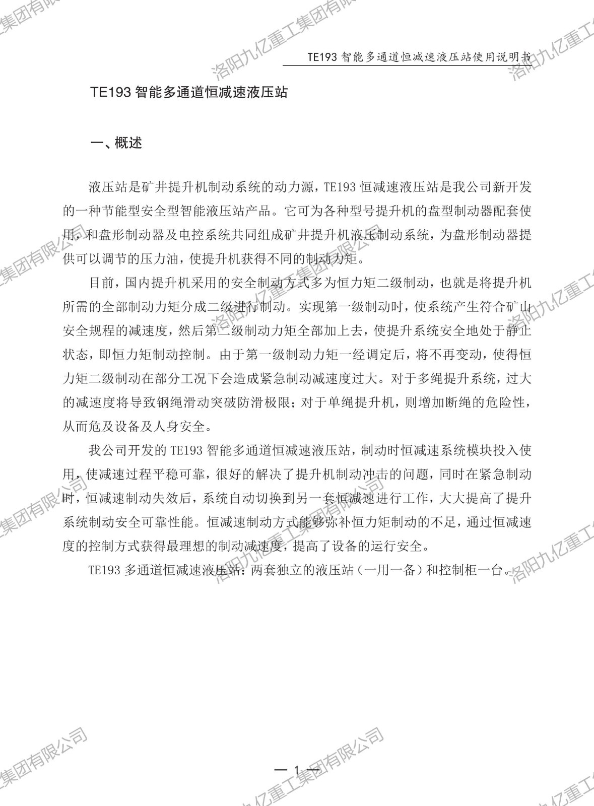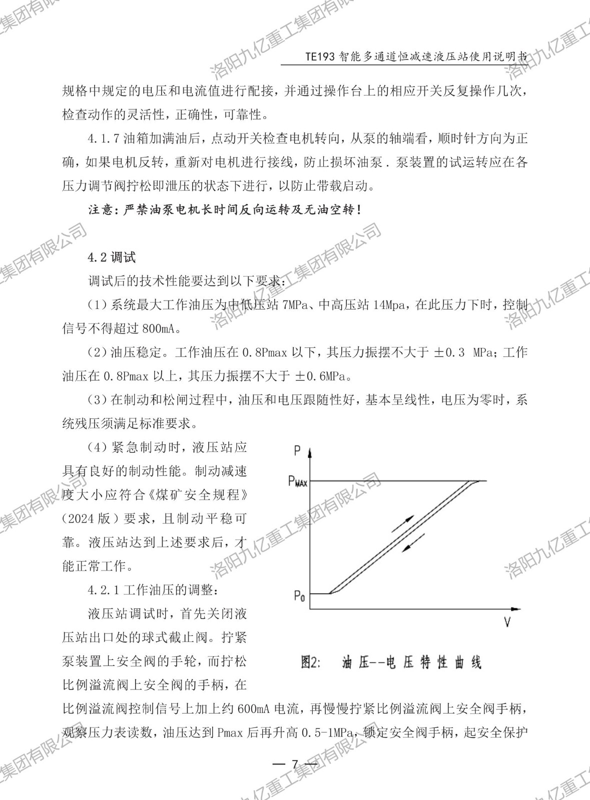 智能多通道恒減速液壓站TE193使用說(shuō)明書
